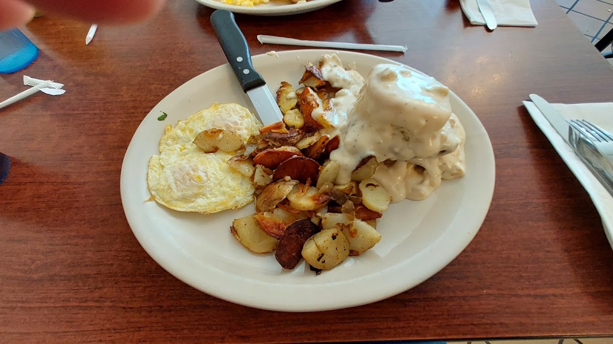 The menu leans heavily into American diner staples, and that’s where the experience really shines. Breakfast is clearly the star. I watched plates of biscuits and gravy come out in steady waves, the gravy thick, peppery, and unapologetically hearty. My own order was the country-fried steak with eggs, and it arrived exactly how a proper diner breakfast should-crispy breading, tender meat, and eggs cooked to order. According to data from the National Restaurant Association, breakfast remains one of the most popular dine-in meals in the U.S., and diners like this thrive because they do it consistently well.